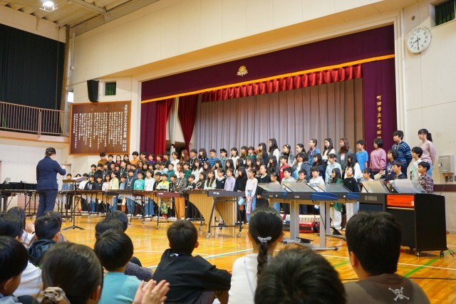 披露したのは、「青空に深呼吸(合唱)」と「シンクロ BOM-BA-YE(合奏)」の2曲です。