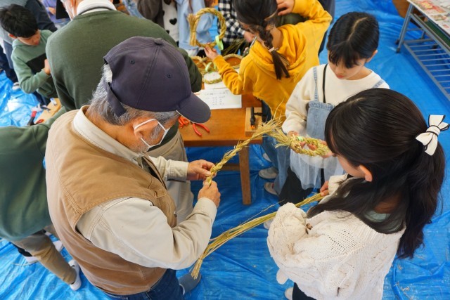 本日、地域の方々をゲストティーチャーにお招きして、5年生が「しめ縄づくり」を体験しました。
