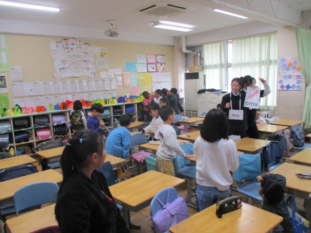 先週は少し緊張している様子が見られましたが、今週は子供たちも慣れてきて、いきいきと学習に取り組んでいました。色の名前を英語で言う練習をしたり、英語で言われた色を教室から探す活動をしたりと楽しく学習できました。