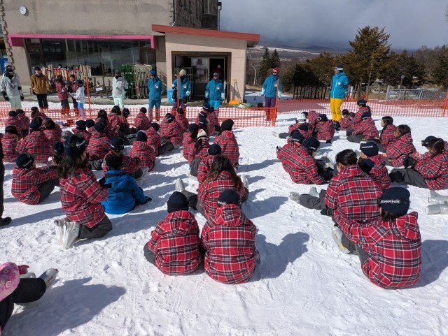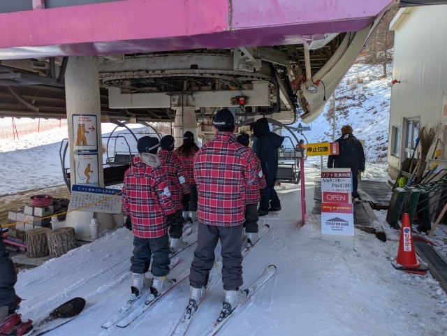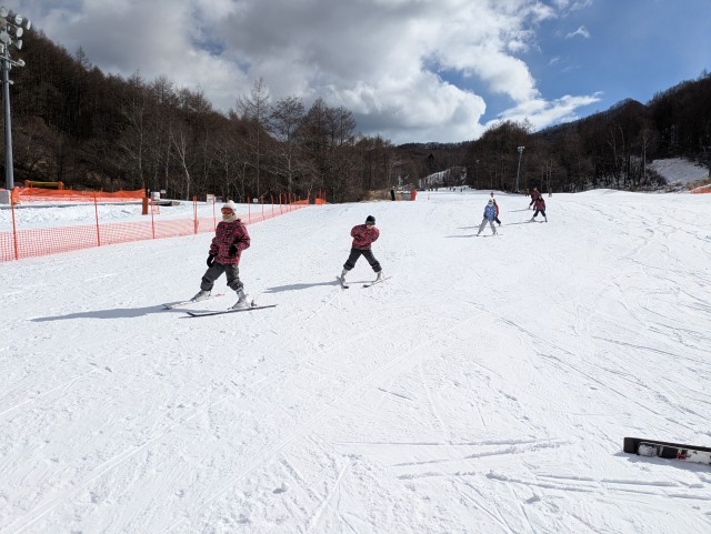 今日は、全員リフトに乗って頂上から滑りました。昨日よりも滑れるようになり、満足した様子です。