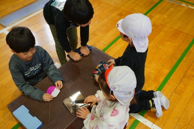 本日3時間目に、1年生が近隣の幼稚園の園児(年長クラス)と交流しました。校庭や体育館で一緒に体を動かして遊んだり、むかし遊びや折り紙の折り方を教えたりしました。まだまだ可愛い1年生と思っていましたが、園児の前では立派な“お兄さん・お姉さん”として声をかけたり見本を見せたりする姿が見られ、頼もしさを感じました。