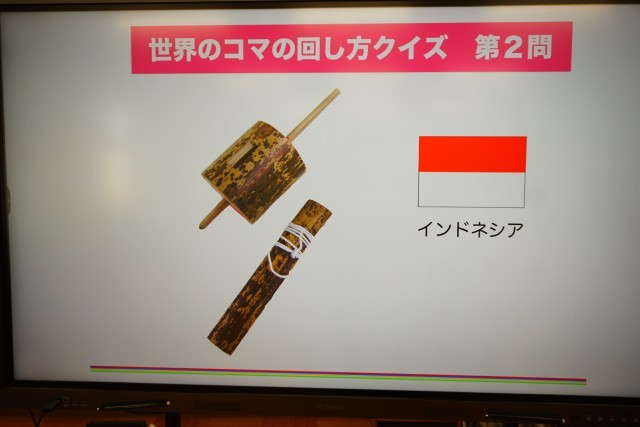 4・5年生のワークショップの後、6年生も世界の遊びに挑戦しました。6年生が挑戦したのは、すごろくではなくコマ回しです。今回挑戦したのは、写真にあるようなインドネシアのコマ。そのコマを回すためには紐と穴が開いた木の板を使うらしいのですが、その使い方(コマの回し方)を自分たちで考えました。コマに空いている謎の穴…その穴に木の板や紐を通そうと試みる児童が多数いました。が、やがて“草の根プロジェクト”の方々から、その穴はコマを回す際には使わないことを聞き、お手上げ状態に。それでもグループで協力して「あーでもない、こーでもない」と試行錯誤を繰り返していました。やがてある子が、ひらめいてトライすると…苦労して正解にたどり着いた時の6年生の表情が印象的でした。(その2に続く)