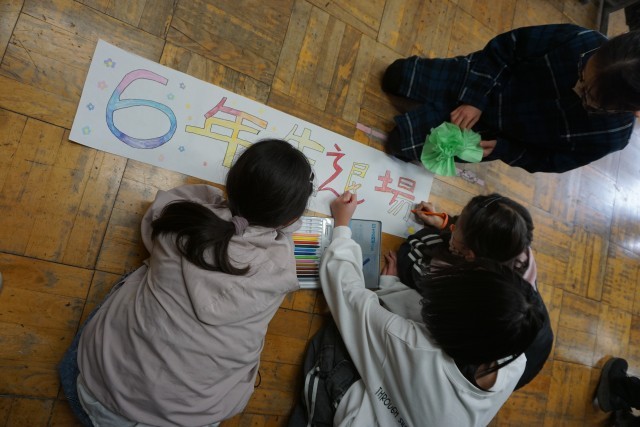 何をしているのかと教室に入ってみると、来週行われる「6年生を送る会」の会場装飾を作成していたのでした。いわゆる文字の掲示なら、今の4年生の子供たちも、タブレットを使って作成できると思いますが、それでは何か味気ないと“手作り”にこだわって作成していました。飾り花を作っている児童もいたので、私も一つ作ってみました。作業をしながら子供たちと話をしていると、『こういう時間も意外と楽しいものだったな…』と担任時代を思い出しました。作業をしていた4年生の子供たちも、楽しみながら作成していた様子でした。主役となる6年生も、こうした下級生の思いを受け止めて本番に臨んでもらいたいなと思いました。