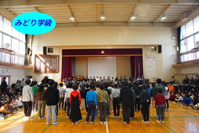 その後はみどり学級の発表がありました。みどり学級全員で「旅立ちの時」の歌を合唱しました。途中何人かの子供たちが一人ずつ歌うソロパートがあり、会場にいる全員がその歌声に聴き入っていました。