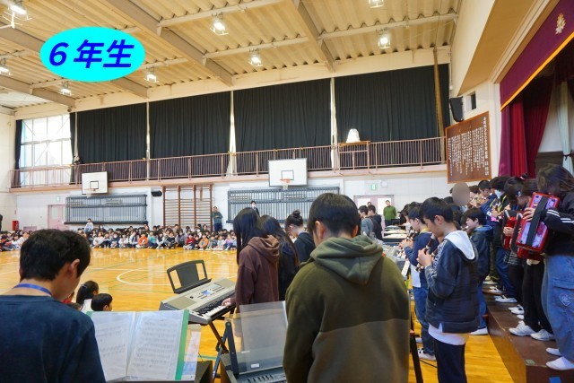最後に全校児童で校歌を歌い「6年生を送る会」は終了となりましたが、終始温かい雰囲気に包まれ、笑顔で退場する6年生がたくさんいました。
