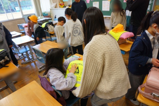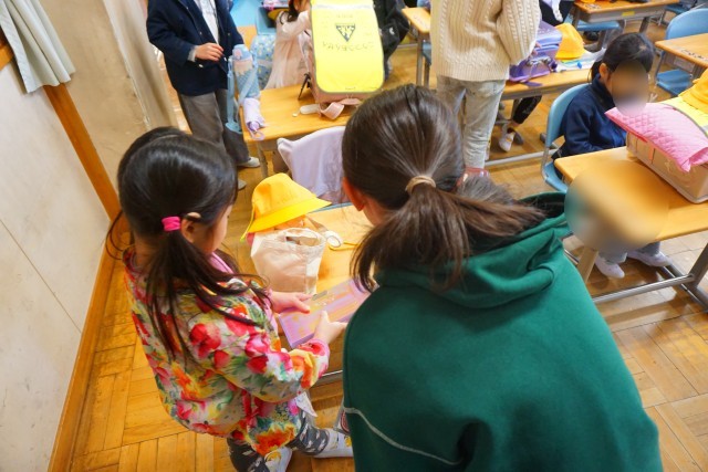 教室に着くと、そこには6年生の姿が・・・。早速今日から1年生の朝の支度のお手伝いが始まりました。1年生の目線に合わせて腰をかがめ、「これはここに置くよ。」などと6年生が優しく教えていました。