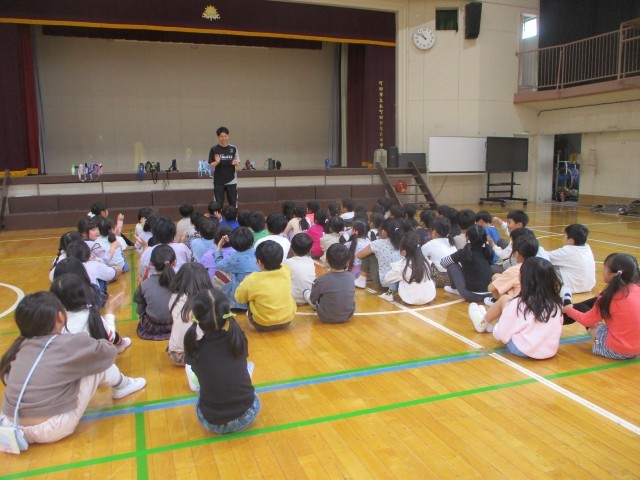 2年生のスローガンは、「どんどん チャレンジ みんなでGO!!」です。新しいこと、苦手なことにも勇気を出して挑戦し、それをみんなで支え合い、助け合い、協力できる1年間にしていこうと話をしました。真剣に、しっかりと目を見て話を聞く姿から、頑張ろう!という意欲を感じました。