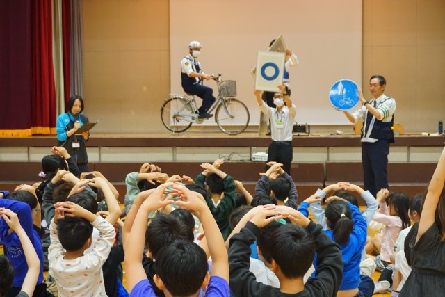 町田警察署の方々にお越しいただき、安全な自転車の乗り方や、運転するときのルールについて分かりやすく教えていただきました。最後には全10問のクイズが出題され、ほとんどの児童が正しく答えることができていました。実施後は担任の先生から自転車安全教室を受講した証として免許証型のカードと御家庭でも活用できるワークシートが配られました。3年生の保護者の皆さんは、ぜひ御家庭でも子供と一緒に自転車の正しい乗り方を確認してみてください。