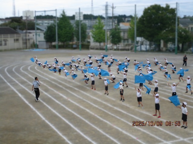 運動会の練習の様子 公開日 2025/10/09 更新日 2025/10/09 学校日記 運動会が近づき、練習が本格的に始まりました。 校庭では旗を振って、音楽室では応援歌「ゴーゴーゴー!」を歌い、体育館でも表現の練習に熱が入っています。