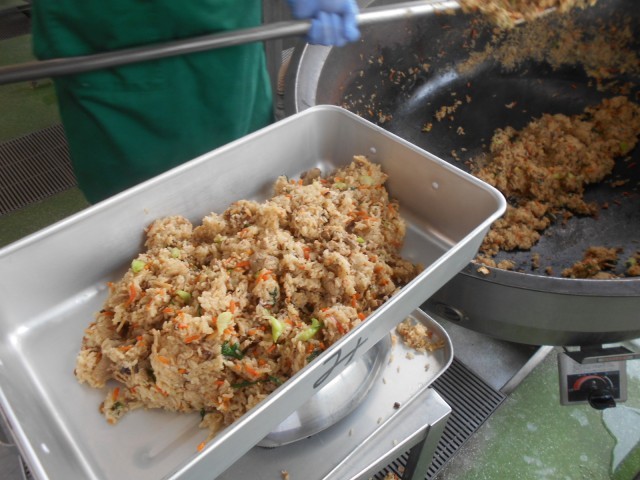 具には、豚肉、しいたけ、にんじん、たけのこ、チンゲン菜などを入れました。昨年も人気のメニューでしたよ、たくさん食べてくださいね。