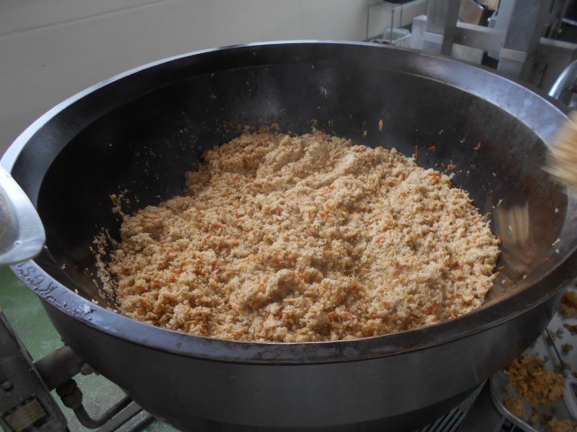 キムチとたくあんを豚肉やニンジンと一緒に炒めて、ごはんに混ぜ込みます。とても人気のメニューです。