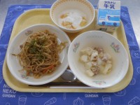 10月22日のメニュー…牛乳、キムたくごはん、きゅうりともやしのナムル、中華風コーンスープ