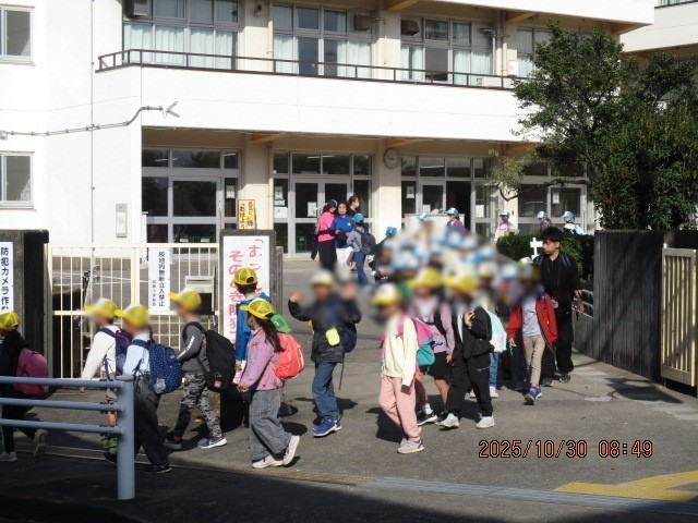2年生が校外学習で自然豊かな「芹ケ谷公園」をどんぐり拾い等、秋探しをしながら散策しました。 雲一つ無い秋晴れの空の下、気持ちよく学校から歩きました。