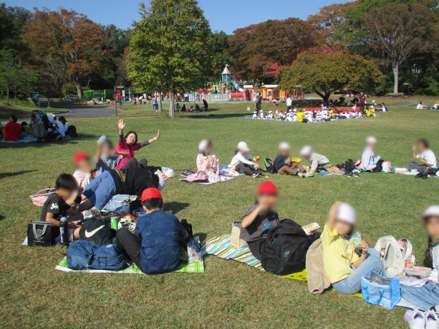 全校遠足2025 (2) 公開日 2025/11/13 更新日 2025/11/10 学校日記 こどもの国に着いた後は縦割り班ごとに、それぞれが決めた、ボール遊び、だるまさんが転んだ、遊具などで思い思いに遊びました。 5,6年生が下級生のお世話をよくして、みんなで元気に芝生の上を走り回っていました。 3枚目は先生も児童と一緒に輪になって、昼ご飯を食べている様子です。 青空の下で上級生から下級生まで一緒に、お弁当を美味しそうに食べていました。