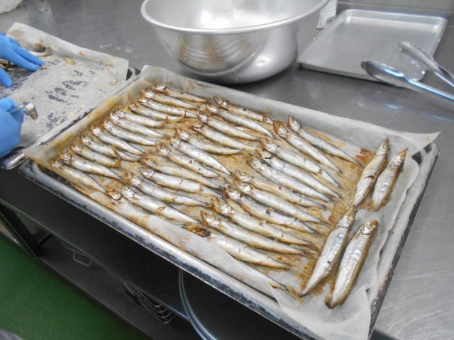 11月14日のメニュー…牛乳、キムチチャーハン、焼きししゃも、野菜の辛し和え、かきたま汁