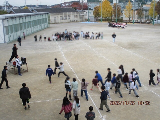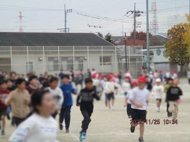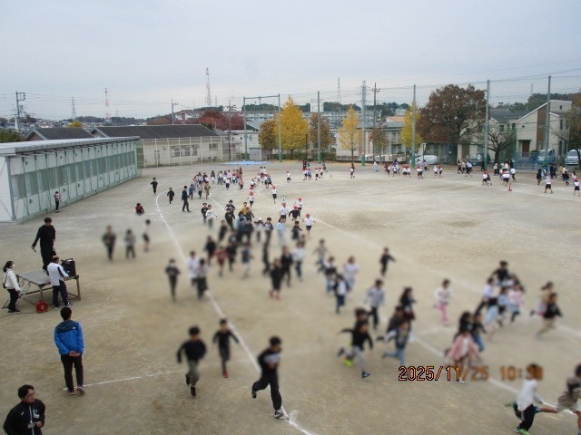 本日の " なる小ランニング " 公開日 2025/11/26 更新日 2025/11/25 学校日記 今日の "なる小ランニング" は1・3・5年生が中休みに走りました。3連休中の好天気から一転して曇り空の寒い日となりましたが、子供たちは元気に笑顔で走りました。