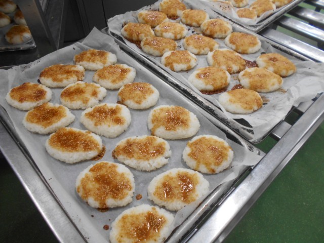 五平もちは、長野・岐阜・富山・愛知などに伝わる郷土料理です。炊いたごはんをつぶして小判の形にし、甘いたれを塗って焼いたものです。今日はゴマの入った甘いみそだれを塗っています。食べたらぜひ感想を聞かせてください。