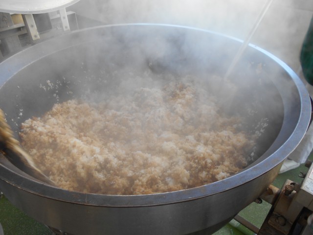 今日は「さんまごはん」です。サンマに下味をつけて揚げ、甘辛いタレを絡めたものをごはんに混ぜ込みました。毎回人気の献立です。