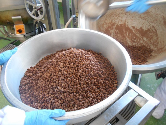 ココアビーンズは炒り大豆に砂糖とミルクココアをまぶしました。カリカリなのでよ食べてくださいね。