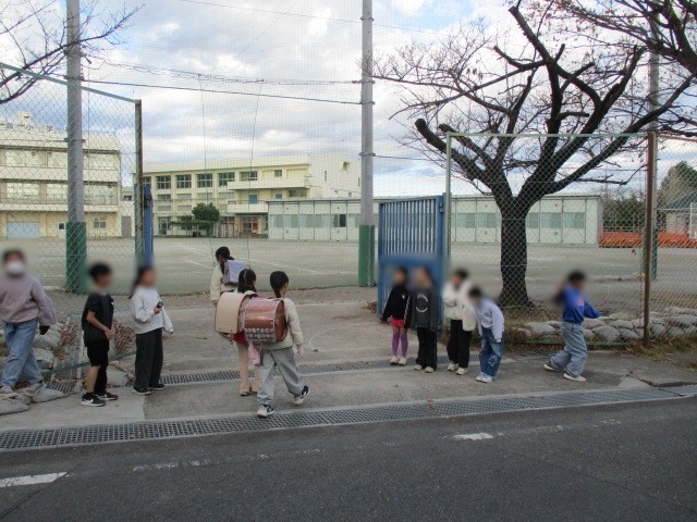 今日は冷え込んだ朝となりました。 あいさつ運動の今日の担当は2年1組でした。 正門(黄色門)と裏門(青門)に分かれて、登校してくるお友達に元気に大きな声で、おはようございます! とあいさつをしました。