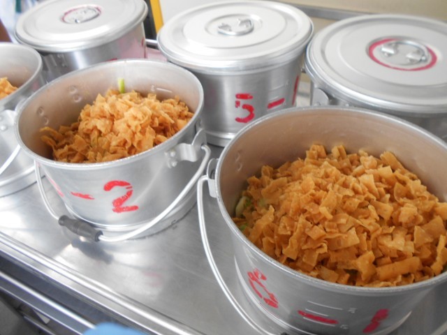 12月は町田で作られた野菜をたくさん使います。キャベツや大根、白菜、長ネギ、ブロッコリー、カリフローレ、ゆずなどです。今日のサラダにも町田で採れたキャベツを使いました。地元で採れた新鮮でおいしい野菜を味わっていただきましょう。