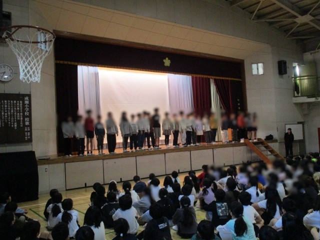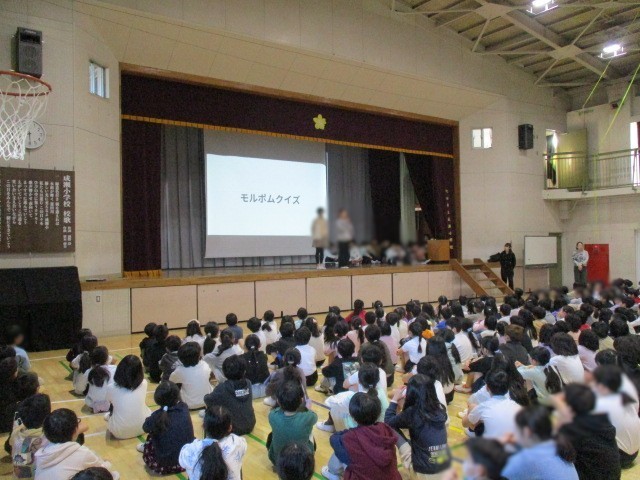飼育委員発表集会 公開日 2026/01/16 更新日 2026/01/16 学校日記 今朝の飼育委員会発表会の様子です。 飼育委員が出題する、飼育している動物の〇✖クイズを児童は挙手で答えていました。 朝から楽しい時間を過ごしました。