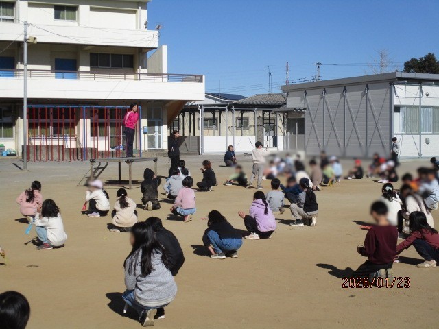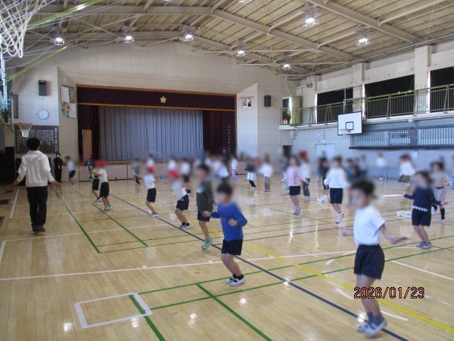 短なわ期間 が終了しました。 公開日 2026/01/23 更新日 2026/01/23 学校日記 年初から始まった ” 短なわ期間 ” が本日で終了しました。 児童は寒空の下で跳び続けました。 今日は中休みに2年生が体育館で3年生4年生が校庭で跳びました。 最後はなわ跳びのなわをしばって手に持ち、担当の先生とご挨拶をして終了しました。 健康と体力を付けるために、これからもなわ跳びの習慣をつけてもらえると良いですね。