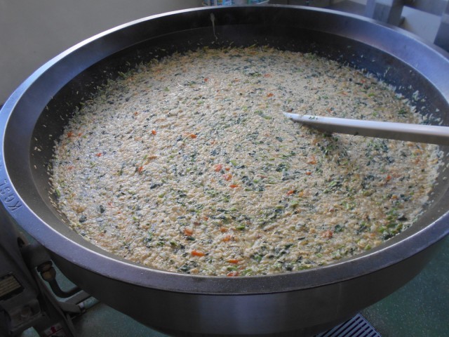 1月9日のメニュー…牛乳、七草たまご雑炊、さわらのみそ焼き、紅白なます、鏡開きの白玉あずき