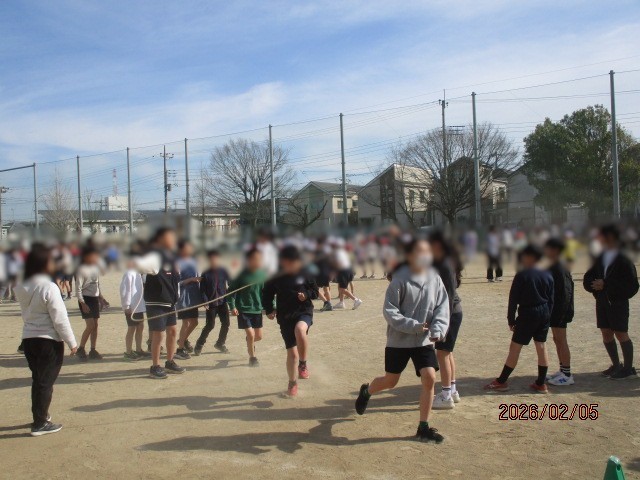 今日の中休み(長なわ期間) 公開日 2026/02/09 更新日 2026/02/06 学校日記 13日の長なわ期間の終了に向けて、児童は中休みに跳び続けています。 今日は3月末並みの気温という事で日差しがとても暖かく、のびのびと跳んでいました。 1枚目の写真は準備運動をしているところです。