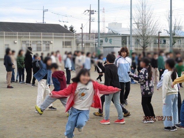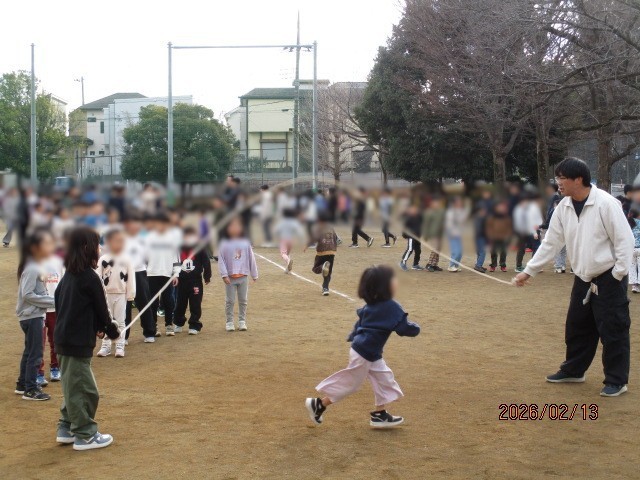 長なわ期間最終日 公開日 2026/02/20 更新日 2026/02/20 学校日記 全校児童が朝会で校庭で長なわを跳びました。 今日で2週間の長なわ期間が終わります。最初の頃は1年生は長なわの中への入り方が分からず、跳べない子もいましたが先生に教わり笑顔で跳べるようになりました。 これからも学校で長なわの練習を積んで6年生になる頃にはとても上手になる事でしょう。