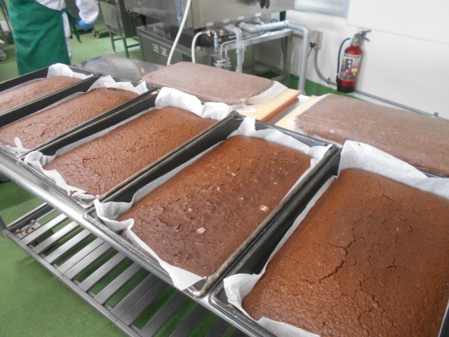 明日14日はバレンタインデーなので、今日は給食室からみなさんへ、心を込めてチョコレートケーキを作りました。バターたっぷりの濃厚なケーキです。