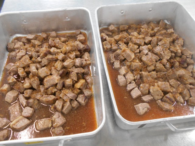 みなさん、もうすぐ進級、卒業ですね。おめでとうございます!今日は給食室からの特別な贈り物、最高級の「和牛ステーキ」です。