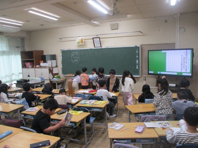 3年生は、国語「じこしょうかいをしよう」で、互いの好きなことを発表し合う姿が見られました。
