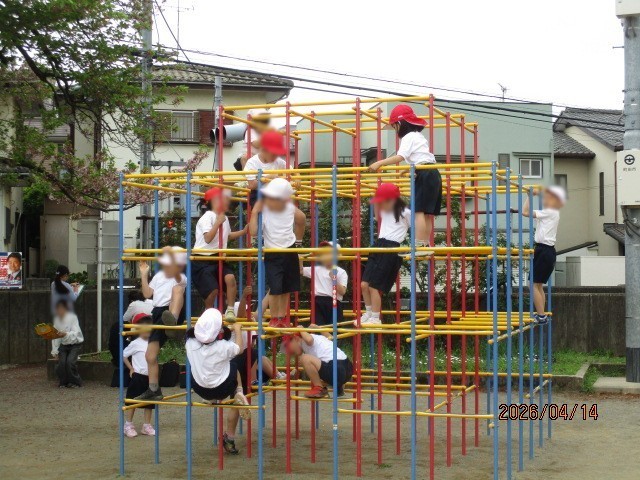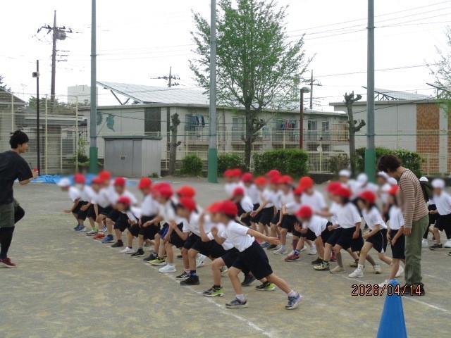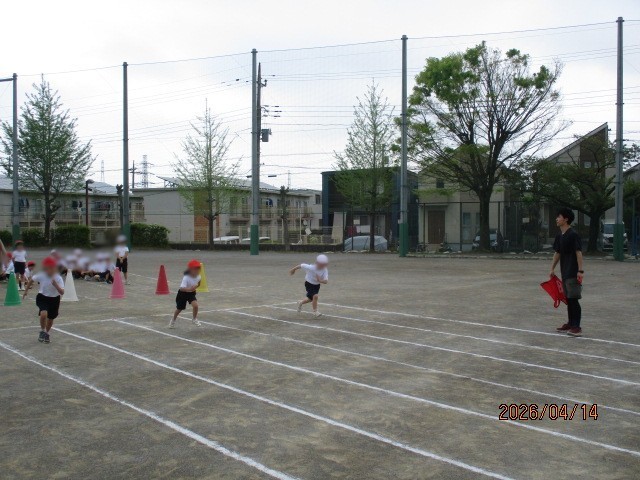 体育の授業 1年生 公開日 2026/04/14 更新日 2026/04/14 学校日記 1年生の体育の授業の様子です。 最初に1年生全員が校庭に出て整列して準備体操をしました。 その後かけっこ組と遊具組に分かれて授業をしました。 1枚目の写真は、かけっこの "よーいドン" のスタートの仕方を先生から教わっているところです。 それから全員が走りましたが、おもいのほか走るのが早いので職員室から見ていた先生が感心していました。