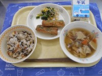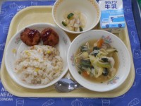 5月30日のメニュー…牛乳、ビビンバ、いりこと大豆のあまからめ、春雨とわかめのスープ