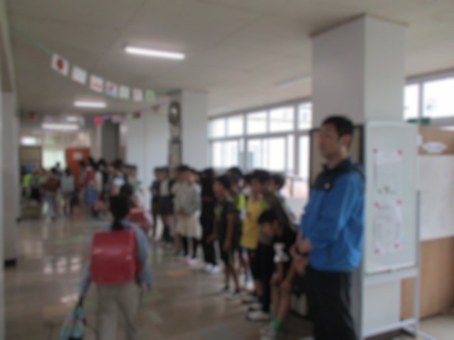 今朝のあいさつ運動は5年生が担当です。 雨が降っているので児童昇降口で行いました。 担当児童が梅雨空を吹き飛ばす、明るく元気な声で「おはようございます!」と挨拶をしました。 登校の児童も大きな声で応えていました、成瀬小学校の児童はとても元気です。