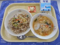 1月21日のメニュー…牛乳、ごはん、鶏のから揚げ、キャベツときゅうりのサラダ、わ...