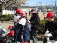 みなみ組の児童が恩田川の清掃活動をしました。 出発にあたり先生からゴミ袋を受け...