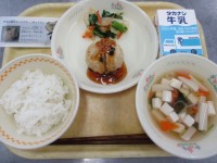 献立・ごはん・まっくうのり・つくねの和風あんかけ・白菜のおひたし・すまし汁・牛乳...
