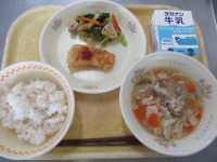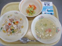 12月12日(金)の給食 公開日 2025/12/12 更新日 2025/12/12 給食 献立・チャーハン・手作りしゅうまい・キャベツスープ・牛乳 今日の主菜は「手作りしゅうまい」です。豚ひき肉やしぼり豆腐、ねぎ、玉ねぎ、干ししいたけなどを混ぜ合わせて、しゅうまいの皮に包みました。給食室の釜で蒸して作っています。
