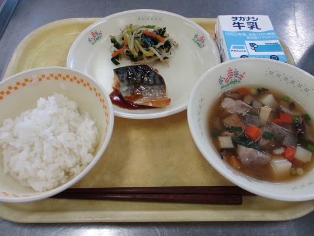 今日の給食では、にんじんやごぼう、こんにゃく、干ししいたけ、たけのこ、じゃがいもなどを煮て作りました。