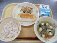献立・玄米ごはん・厚焼きたまご・磯煮・けんちん汁・牛乳 「磯煮」とは、ひじきを使...