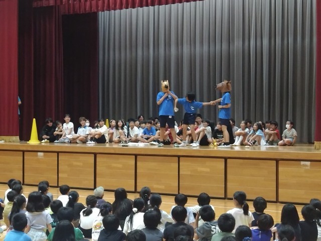 来週はみんなが楽しみにしている「こどもまつり」です。その前に今日はお店の紹介をするコマーシャル集会がありました。各クラスがお店の魅力を上手に伝えていました。あるクラスはほとんどがアドリブで行うなど芸達者な子どもたちです。「こどもまつり」がさらにわくわくするような集会になりました。