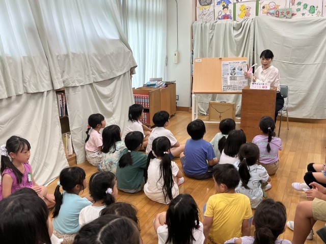 今日は中休みにPTAの方々による「おはなし会」が開かれました。「町一ニュース」では、子どもたちのランドセルについての話題を、その後は紙芝居を読んでくださいました。みんなお話に夢中になっている様子でした。