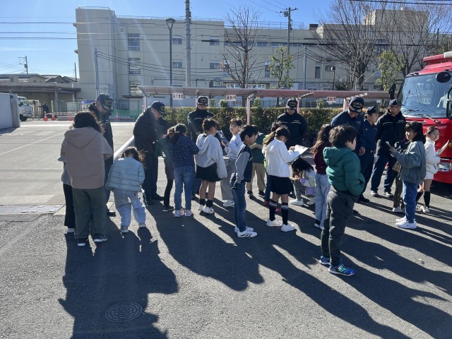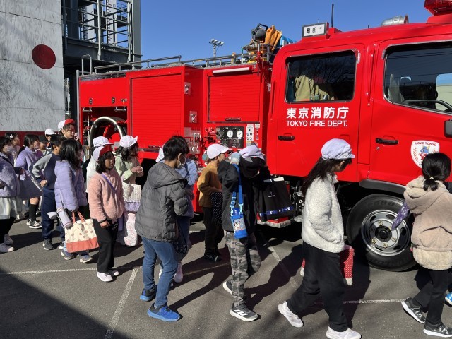 今日は3年生が町田消防署の見学に行きました。隊員の方からの話をよく聞き、たくさんメモをとっていました。質問タイムには自分たちから隊員さんに話しかけて、気になる事を積極的に聞いていました。訓練する様子を見た子どもから驚きの声があがっていました。