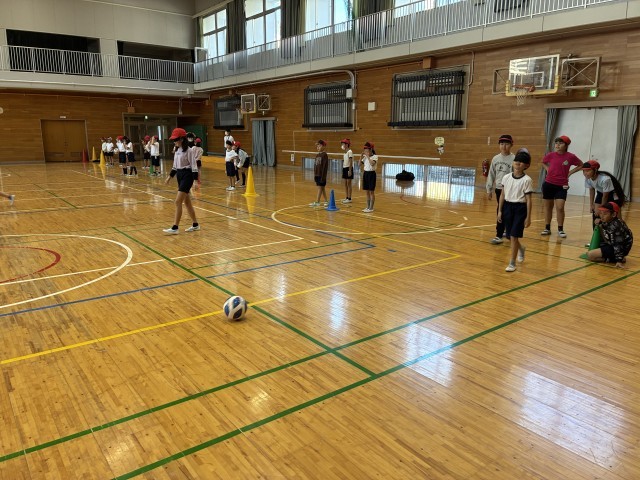 4年生がブラインドサッカーの体験をしました。音の鳴るボール、そして何よりも仲間の声。それをたよりにボールを追いかけたり、ドリブルしたりします。ブラインドサッカーの選手2名に教えていただき、子どもたちは多くのことを学びました!
