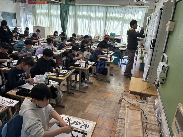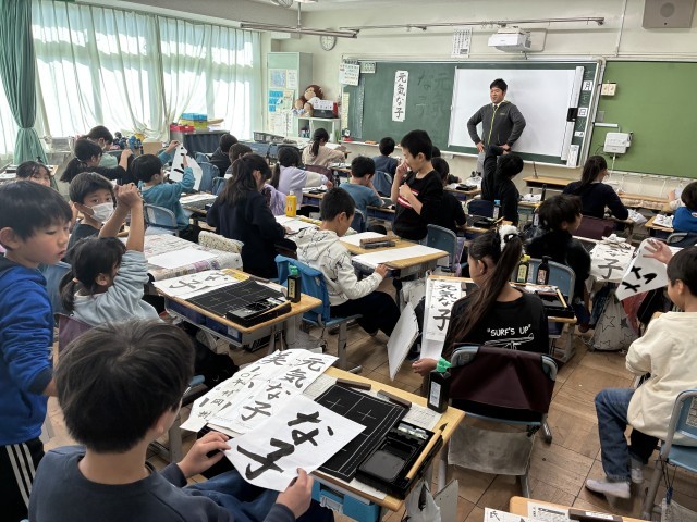 4年生が書き初めの練習をしています。「元気な子」、4年生にぴったりの言葉です。書き初めは本来1月2日に行うのが、日本の伝統です。学校として宿題の形にはしませんが、この日に書くと上達すると言われているので、挑戦するのもよいかもしれません。
