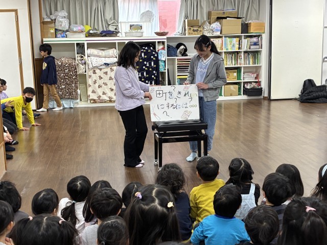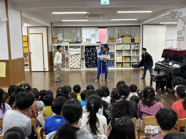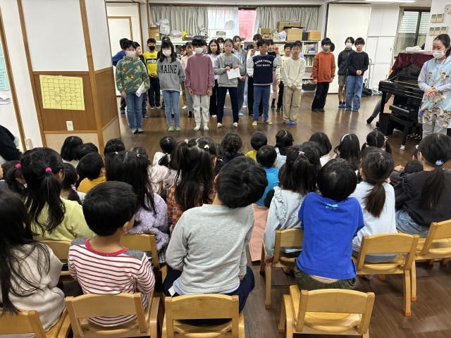 5年生が「なごみ保育園」に行き、園児たちと交流を行いました。園児に向け、「ゴミのポイ捨てはいけない」ということを、紙芝居や劇、そしてゲームで伝えました。聞き手を考えたよい発表でした。とてもよい交流が出来たと思います!