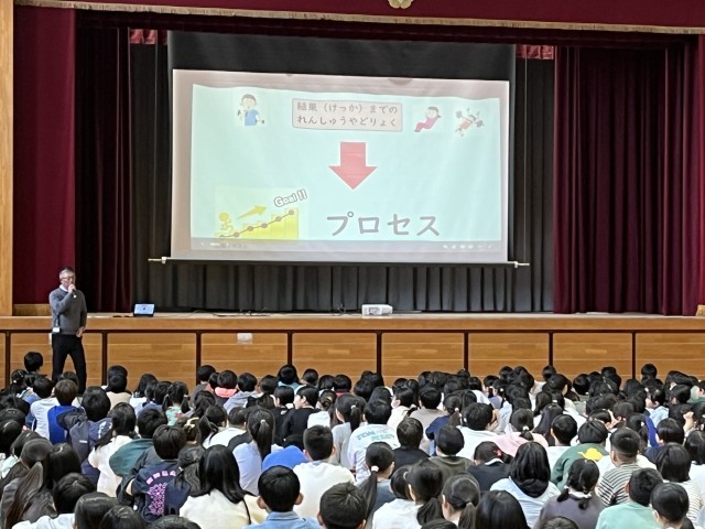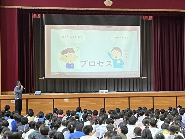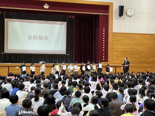 今日の全校昼会では、はじめに1月の「あいさつチャンピオン」の表彰がありました。各クラスのチャンピオンに加え、新たに殿堂入りを果たした3名の表彰がありました。次に、副校長先生から冬季オリンピックの話題に関連して、「見えること(結果)だけでなく、そこに至るまでのプロセスを大切に。」という話があり、子どもたちは頷きながら聞いていました。