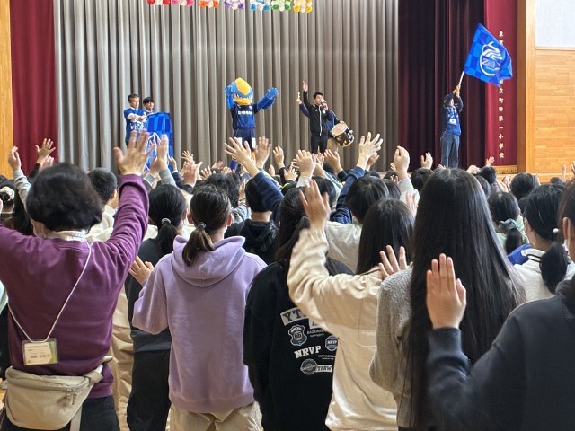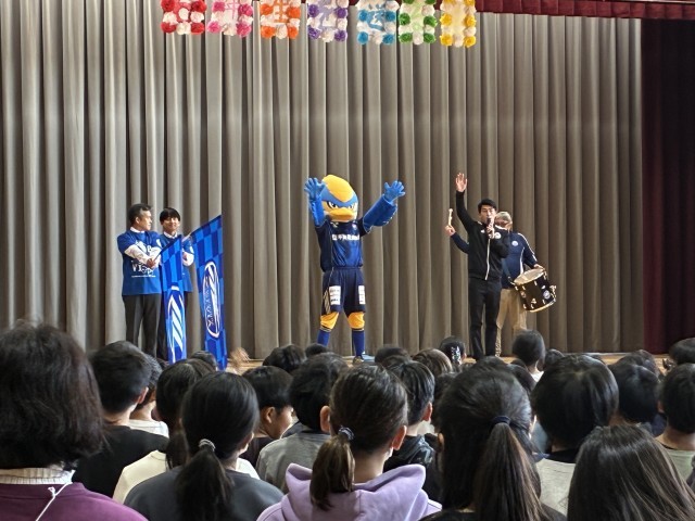 今日はゼルビーくんたちが来校してくださり、ゼルビア昼会を行いました。今はアジアの大会も戦っているゼルビア。韓国のチームとベスト8を争っている最中です。子どもたちは、元気いっぱいにゼルビアの応援をしていました!